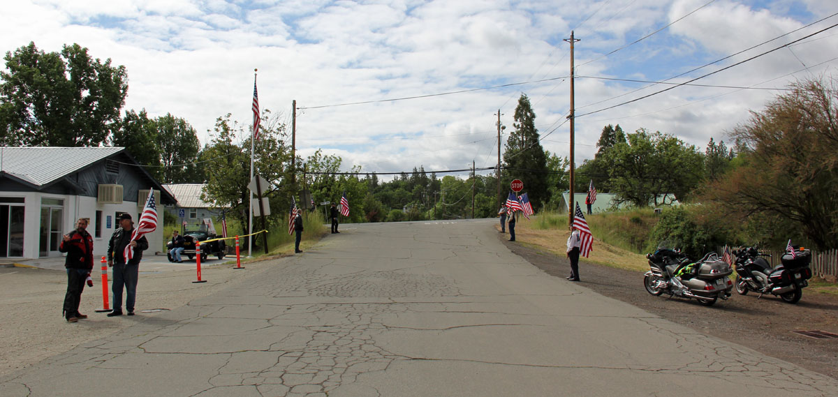 On a cool, clear and partly cloudy Springtime day, Patriot Guard Riders having been invited by the family of 17 year US Air Force Vietnam Veteran Capt. Stephhen E. Murdock took place at 1100 hrs, at the Veterans Memorial Hall and Park, Long St. and Hwy 299, Fall River Mills, CA. A total of 14 PGR showed up for Flag Line and to pay Tribute, Military Honors and Respect.