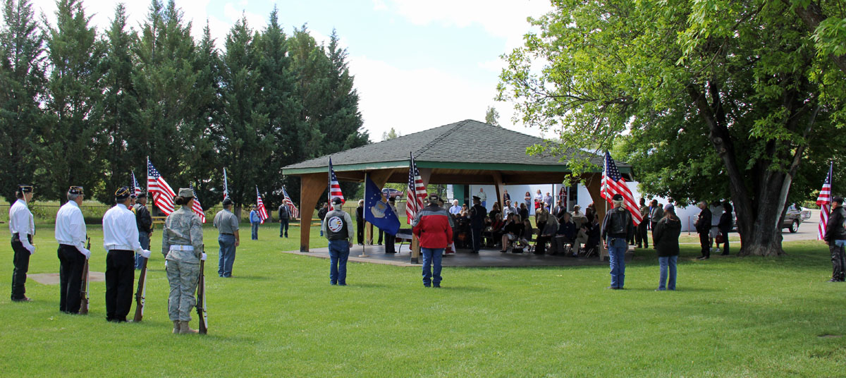 Full military services were held in the park and then moved into the Vets Hall for the eulogy, video presentation and a light lunch. Three active AF personnel folded and presented the colors to the widow. Prayers were offered by Post 369 Chaplain. Post 369 provided the rifle squad. American Legion did the rifle salute. Sheriff and CHP assisted in traffic control on Hyway, etc.