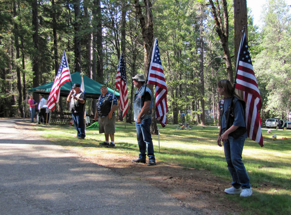 The Patriot Guard Riders having been invited by the family of fallen US Army – Vietnam Veteran, TSpc4 Stephen B Housel, to stand and honor during his Interment service at the Greenville Cemetery, Greenville, CA. The mission involved a flag line at the Greenville Cemetery, Greenville, CA. for family and friends to pass through. On a warm, summer day, 12 PGR members, 8 motors and two cages, showed to present Honors for this true American Hero, where the PGR stood Honor Line at his Interment Service.