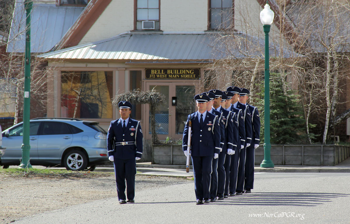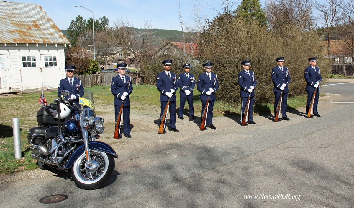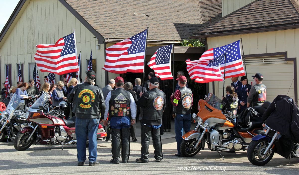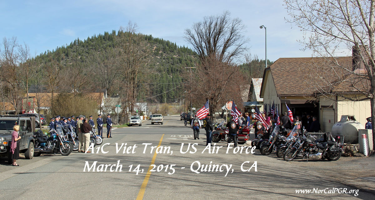 Today, Sunday, Seven Nevada Patriot Guard riders from Reno, Carson, Washoe and Sparks joined eleven NorCal PGR members on a pleasant but windy day in Quincy CA to honor Airman First Class Viet Tran at his memorial service. Airman Tran graduated from Quincy H.S. in 2012 and was very well cared for in the Quincy community as shown by the large gathering of family and friends. Airman Tran was just 20 years old.