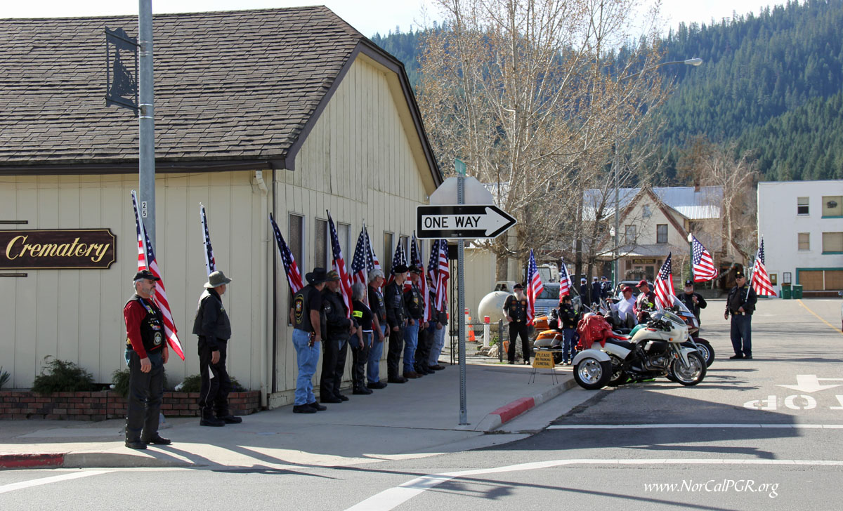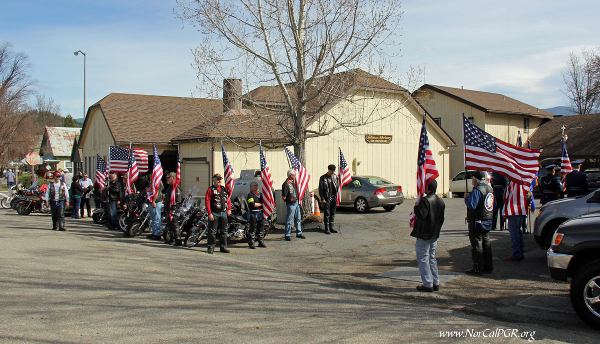 I would like to give a special thanks to Reno Nevada PGR Asset State Captain Bill Drummond and his contingent and who traveled to assist the Susanville PGR stand Honor Line with American Flags during this Mission. Also present with our Patriot Guard Riders we had a great representation of many groups on this Mission.