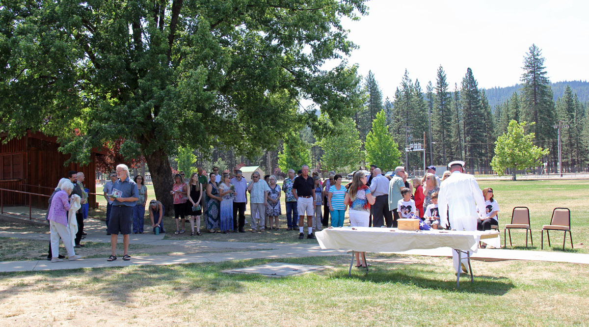 Memorial Services began at 11:30 hrs, at the Plumas County Fairgrounds – 204 Fairground Road, Quincy CA 95971. The Plumas County Fairgrounds is located off of Main Street to the North in East Quincy. We formed a flag line to render honors to the family and friends as they arrived for the Memorial service.