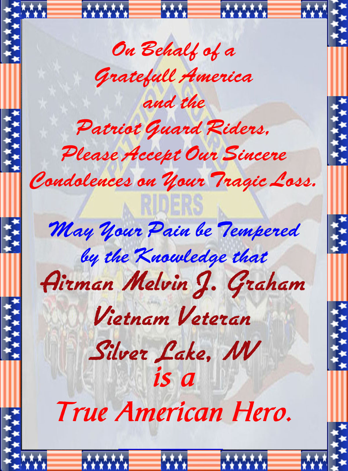 Memorial - Airman Melvin J. Graham, Vietnam Veteran, Silver Lake, NV