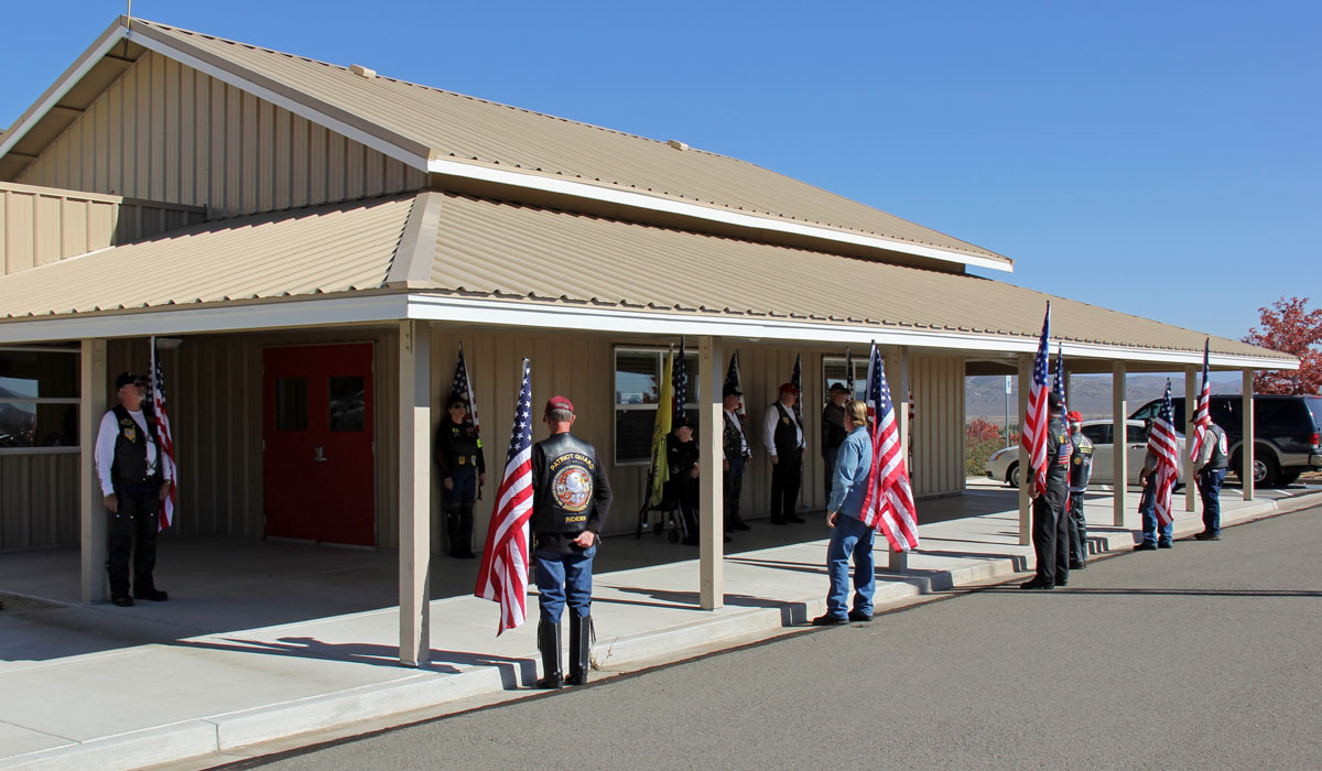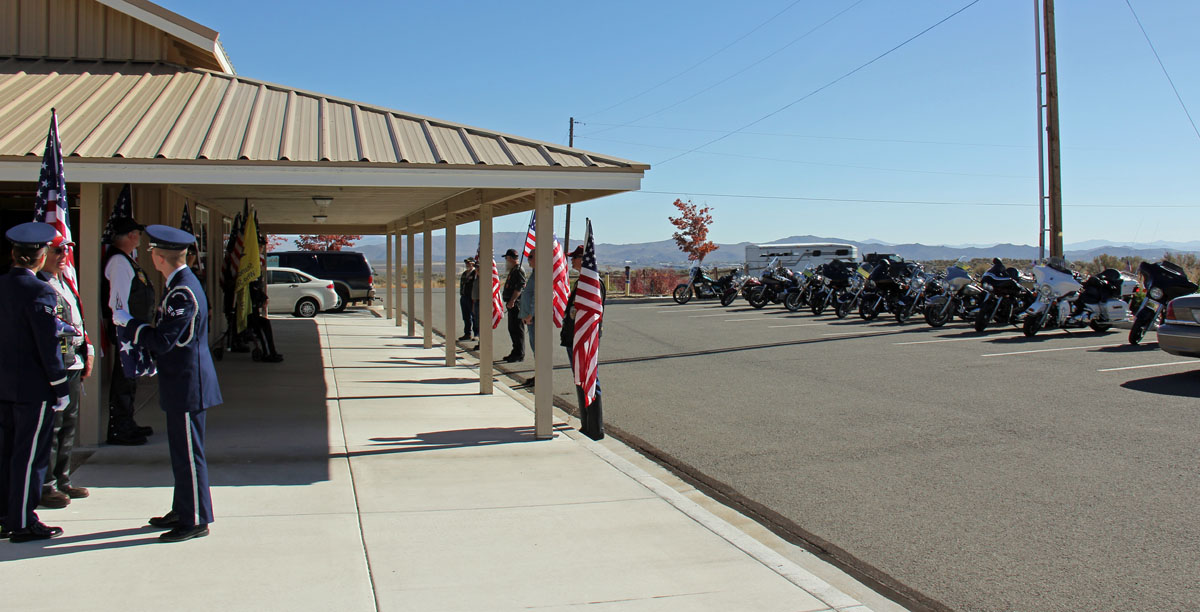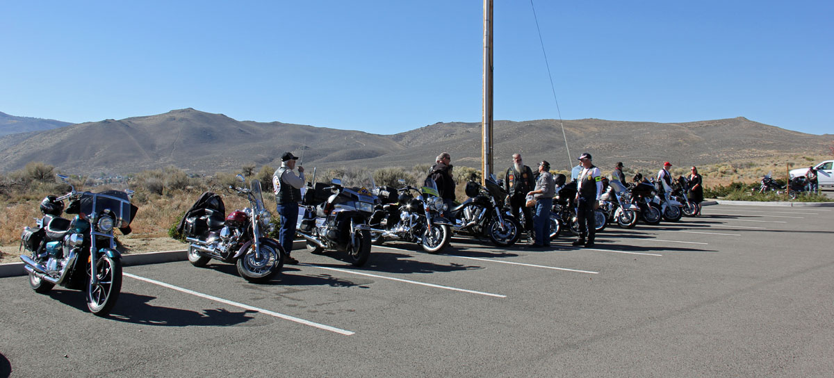 Nor Cal PGR Ride Captain Rick Schultz and three members all from Susanville, CA joined to form the flag line held at the Silver Lake Volunteer Fire House on Red Rock Road.