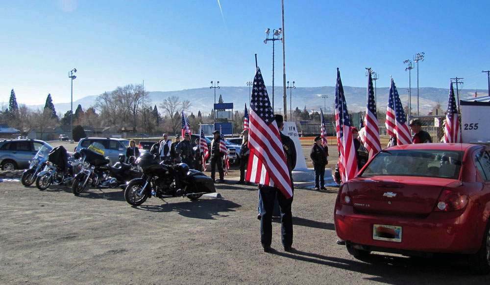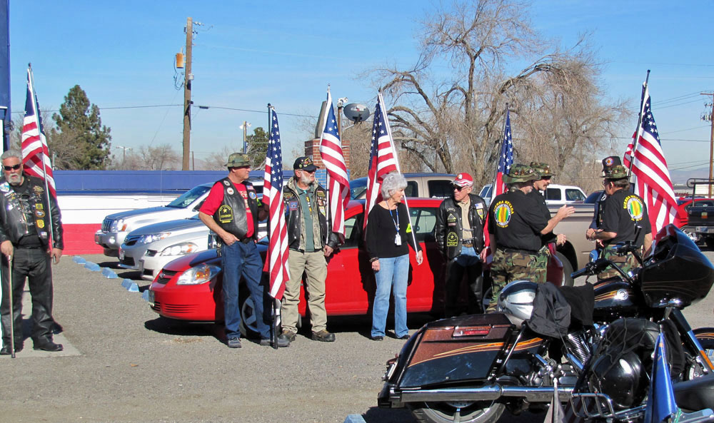 This day, Nor Cal PGR members from Alturas, Susanville and Truckee, CA stood shoulder to shoulder with PGR members from Fallon, Silver Springs, Sparks and Reno, NV to form a thirteen member flag line prior to the memorial service honoring fallen US Navy veteran Brent Butler.