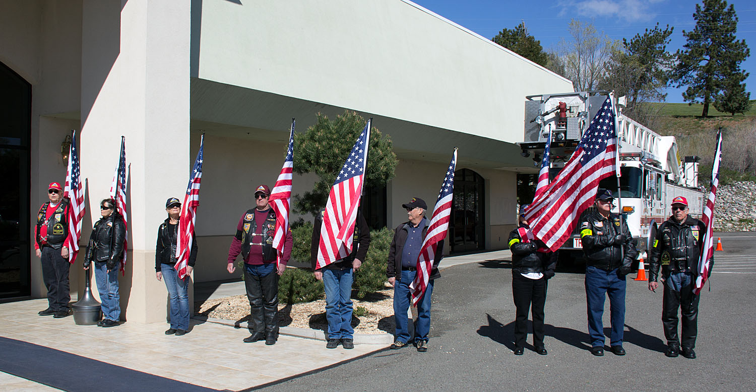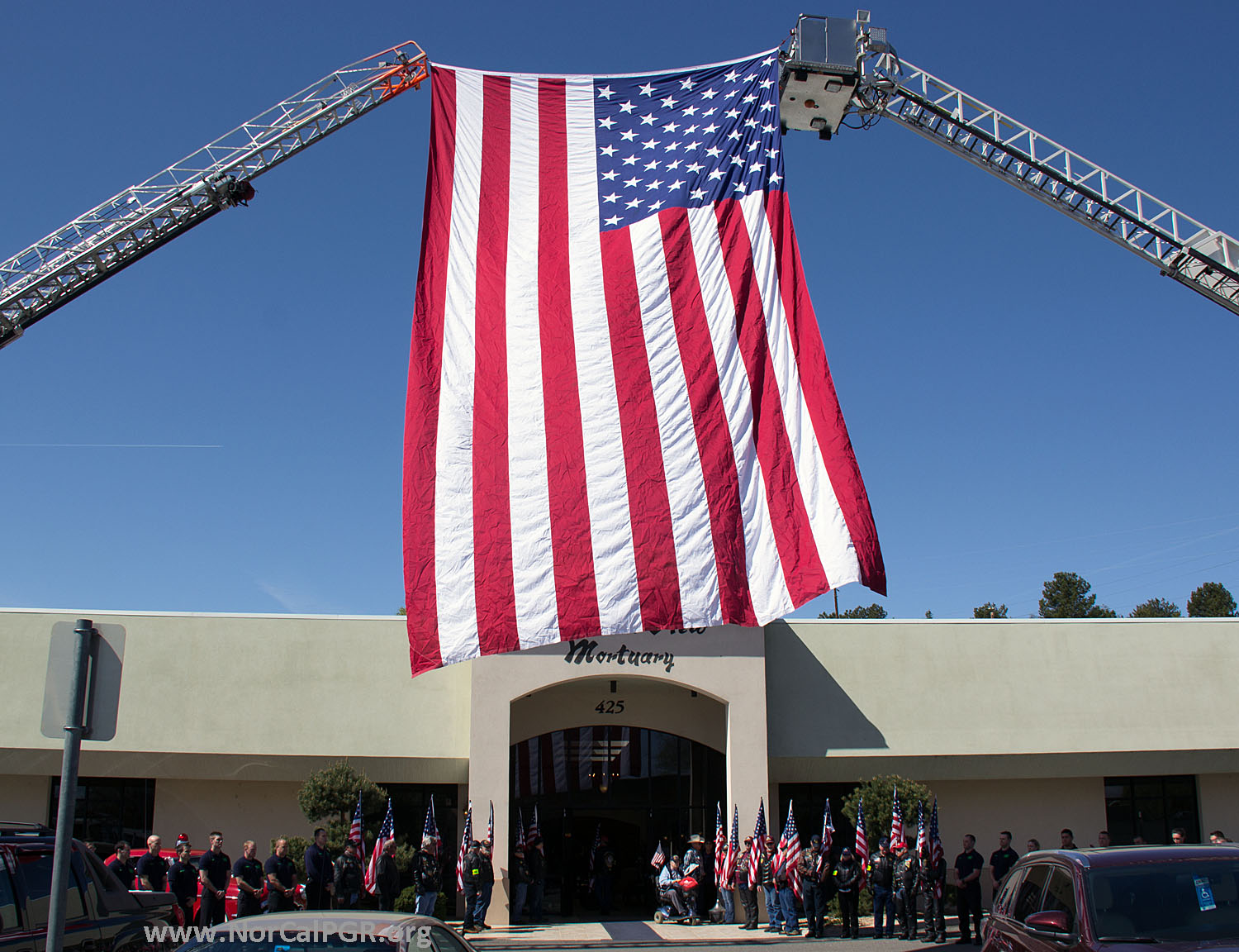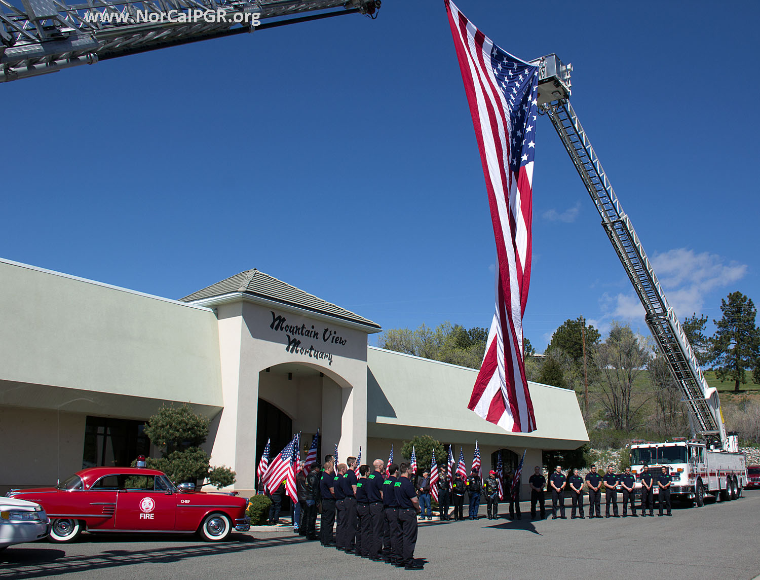 **Today we had a great turn out of 20 of our members attend the memorial for Fire Chief William Farr who gave a life time of service to community and country. A special thanks to our NorCal PGR brothers, Ride Captain Blake, James, Dan and Garry who brought not a single cookie or any muffins at all.....who joined us today . But to all , Thank you, All our Veterans are special, Chief Farr was indeed, Special.