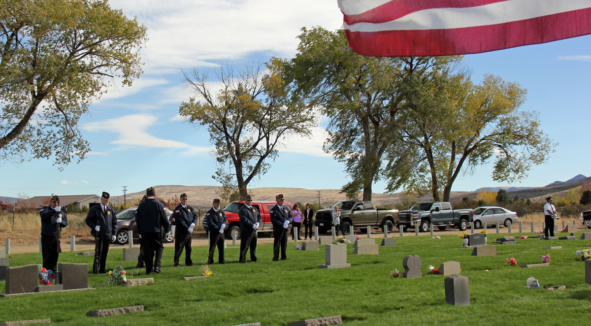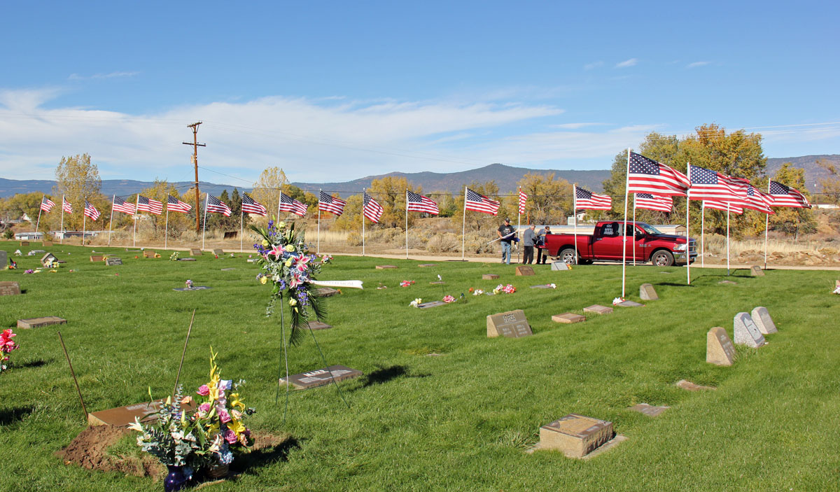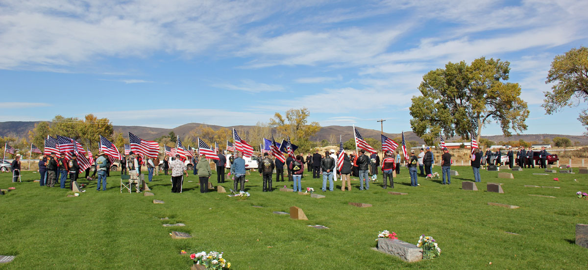 Ride Captain Robert "Cowboy Bob" Rogers of the Sacramento Capital Region Flag Brigade with Fred Loveland (Redding area) who traveled to place the American Flags and Service Flags at Diamond Crest Cemetery,