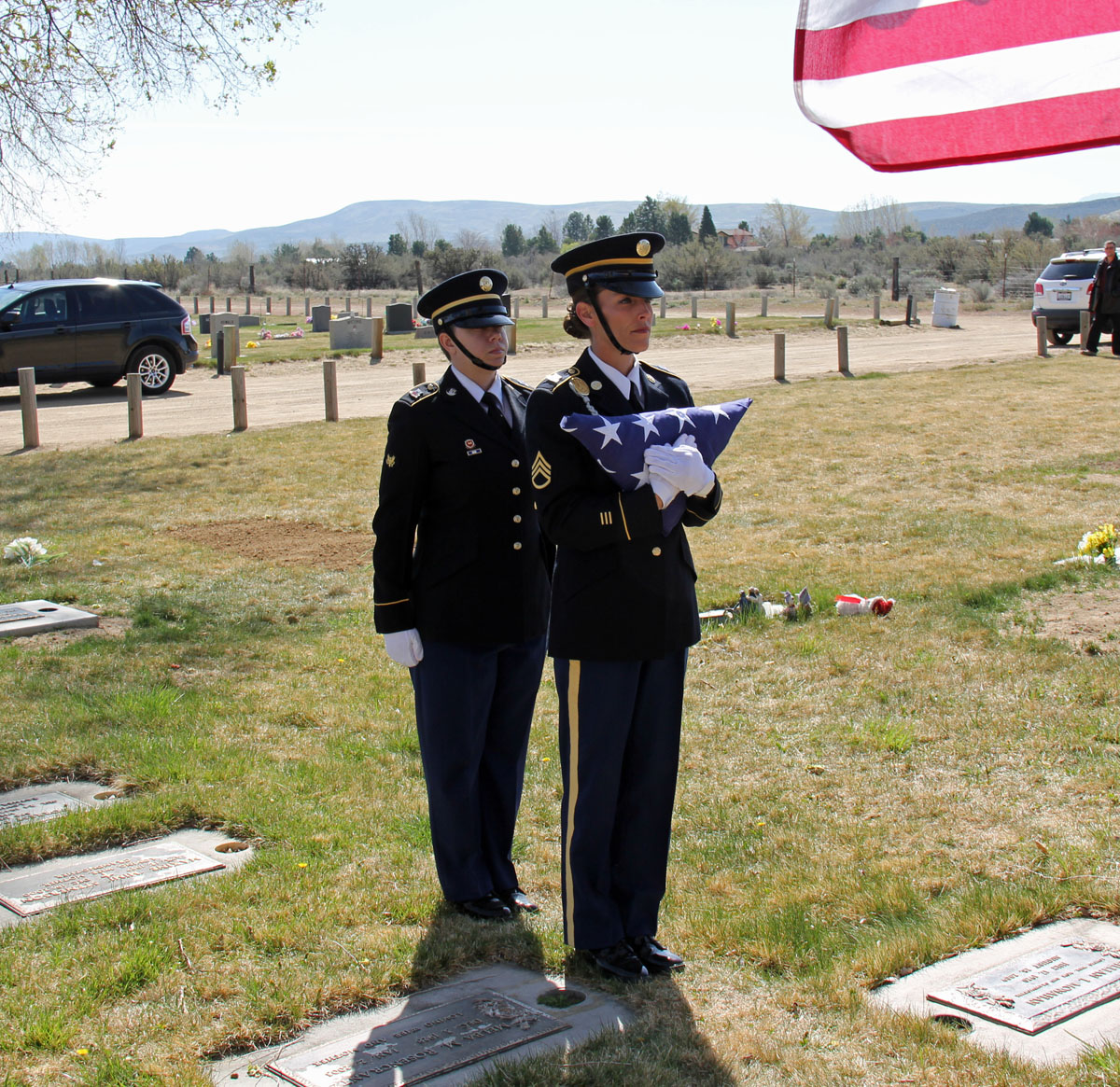 The Patriot Guard Riders having been invited by the family of fallen US Army Air Corp- WWII Veteran, Sgt Kenneth L. Erb, to stand and honor during his Interment Service at Diamond Crest Cemetery, Susanville, CA.. The mission involved a flag line at Diamond Crest Cemetery, Susanville, CA for family and friends to pass through. On a windy Spring day, 8 PGR members showed to present Honors to Sgt Kenneth L. Erb and his family at his final resting.