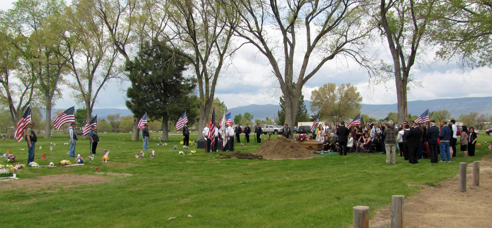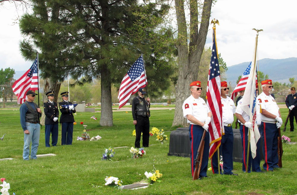 The Patriot Guard Riders having been invited by the family of fallen US Army Air Force- WWII Veteran, Cpl Willard Means, to stand and honor during his interment service at the Diamond Crest Cemetery, Susanville, CA.. The mission involved a flag line at the Crest Cemetery, Susanville, CA for family and friends to pass through. On an overcast Spring day, 12 PGR members showed to present Honors for this true American Hero and last of a great generation, where the PGR stood Honor Line at his final resting.