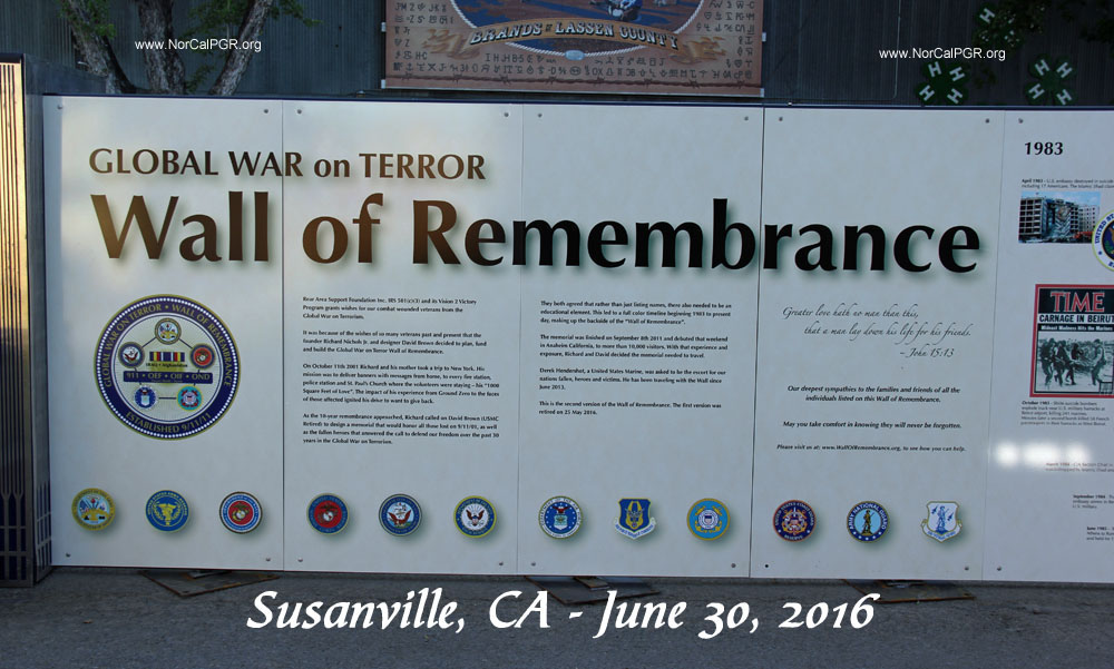 The Wall of Remembrance will be at the Lassen County Fairgrounds through the Fourth of July weekend and is available to Veterans during the evening hours. I highly recommend all Veterans see this Memorial Wall during this weekend. If you are a Global War on Terror Veteran, know you will not be alone and Welcome Home.