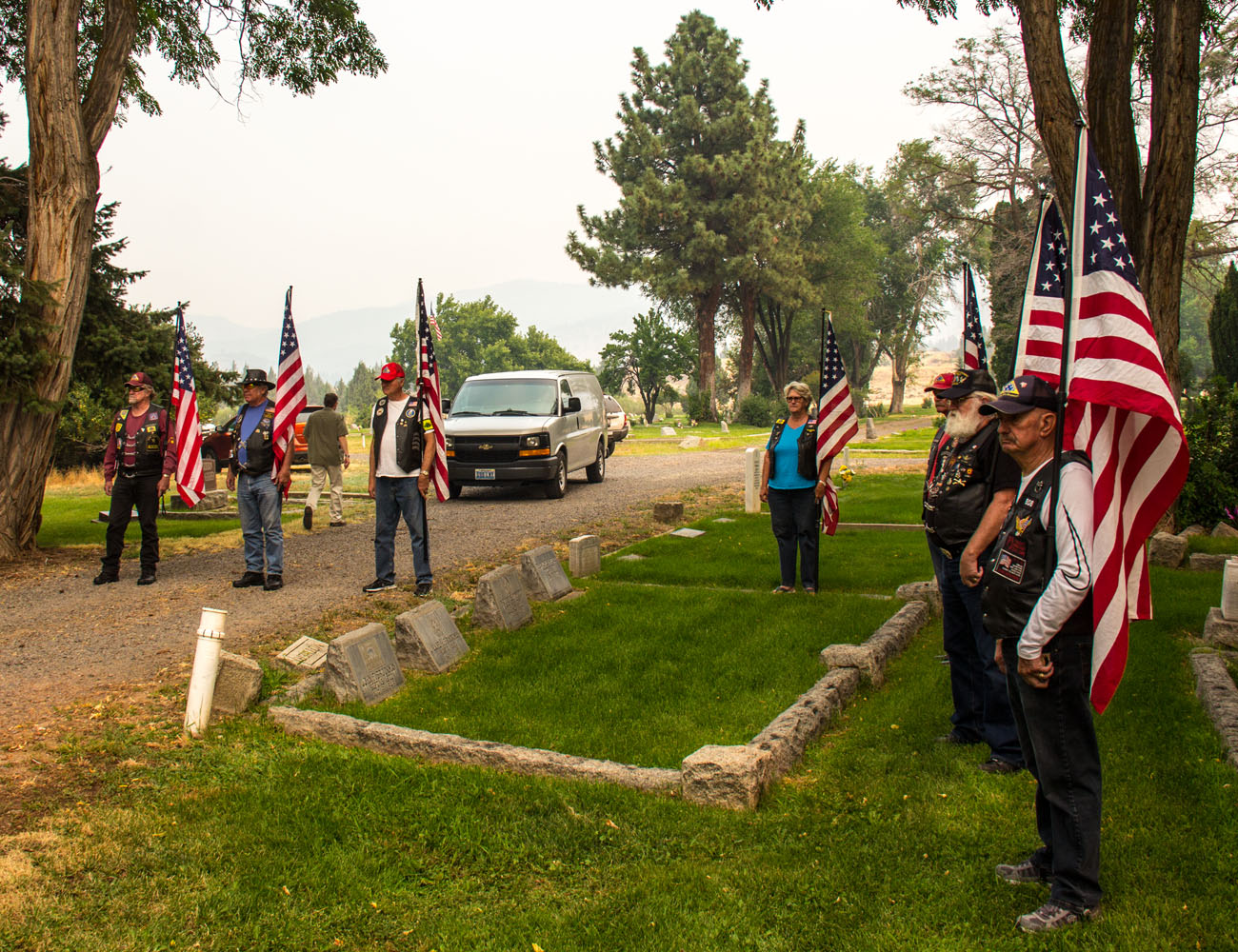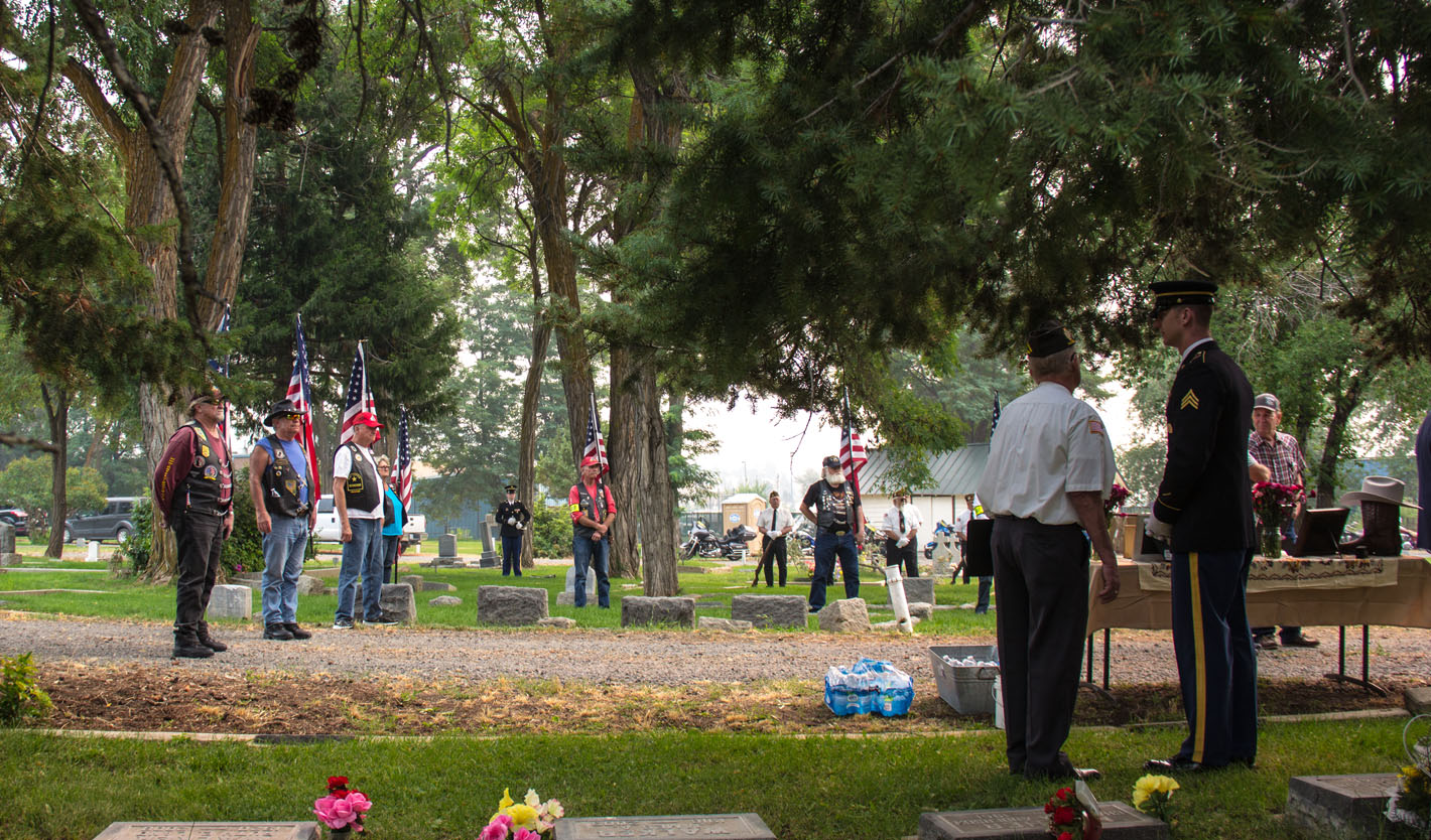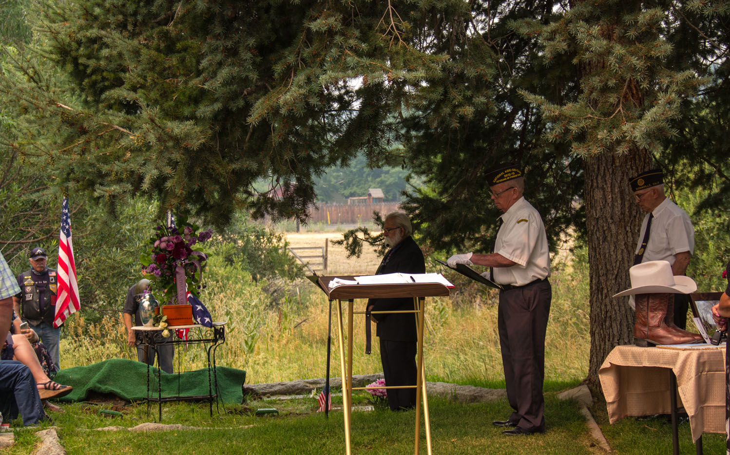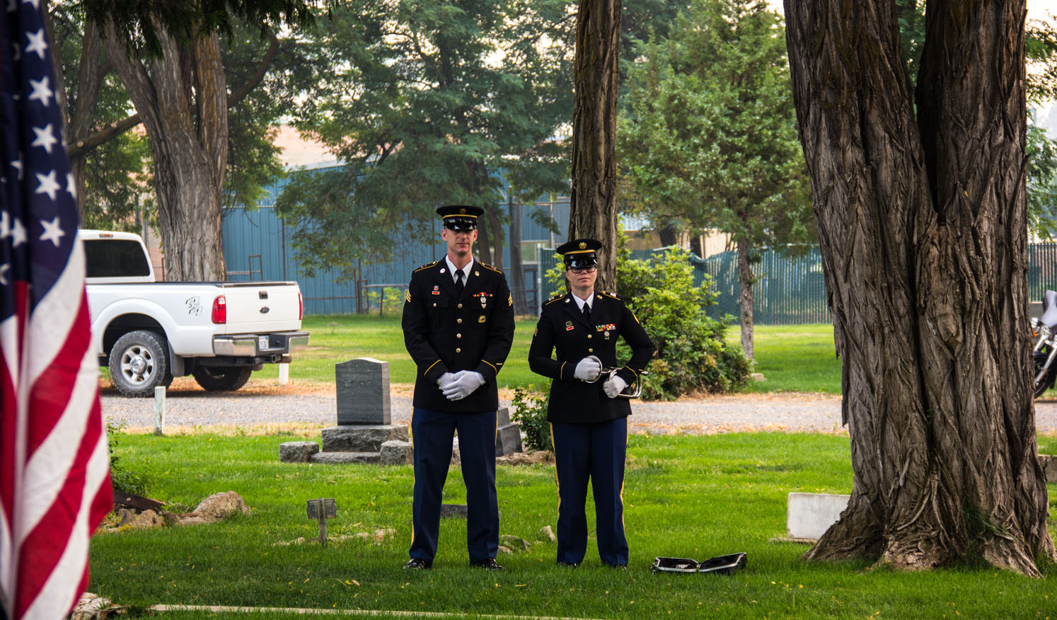 On a very cool morning, 70 - 80 degrees, in Susanville (Only cool because of the several fires burning in nearby areas, Redding, CA fire and Eagle Lake - Spalding, CA fire with smoke blocking the sunshine from heating up the morning faster) 20 PGR arrived to pay final Honors and Respect to our Fallen WWII veteran Lenn Bill. His former wife was also buried with him at the cemetery.