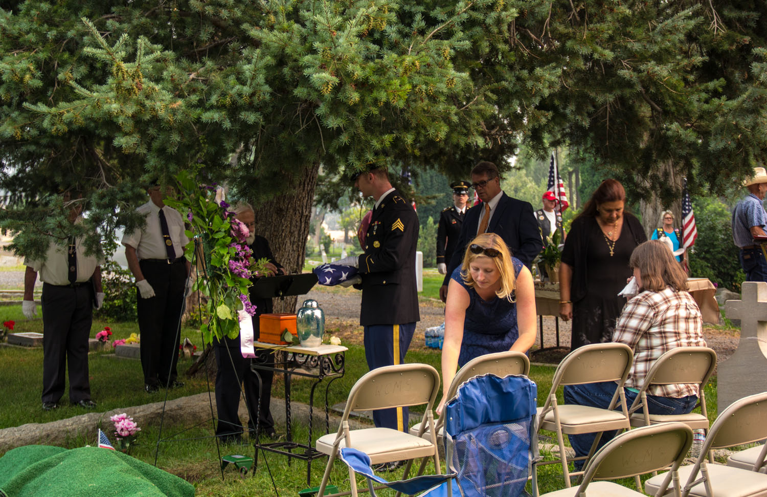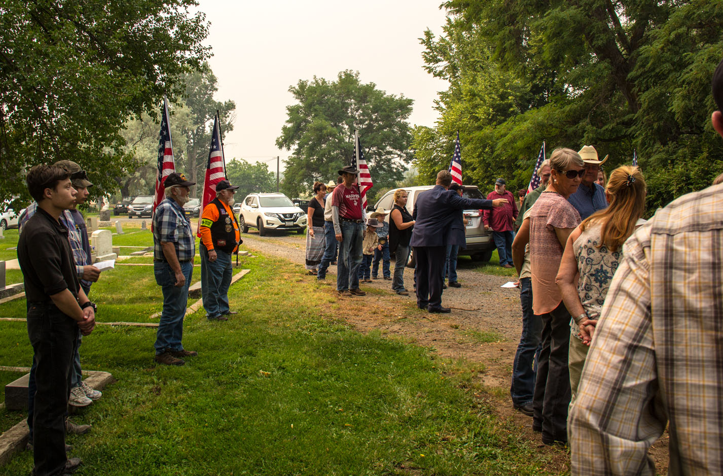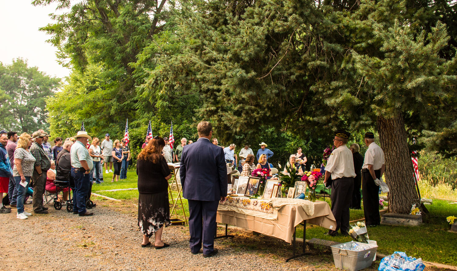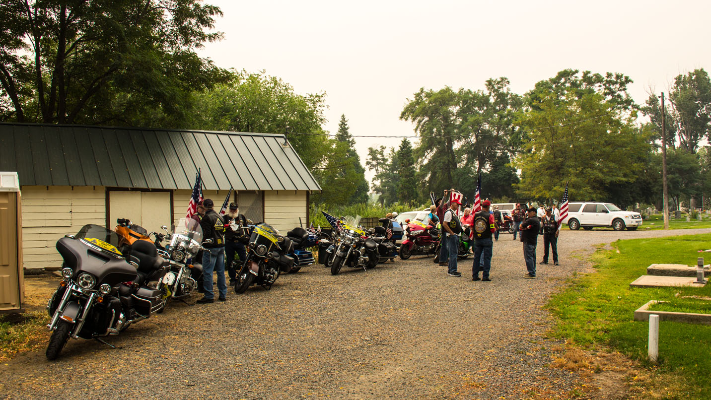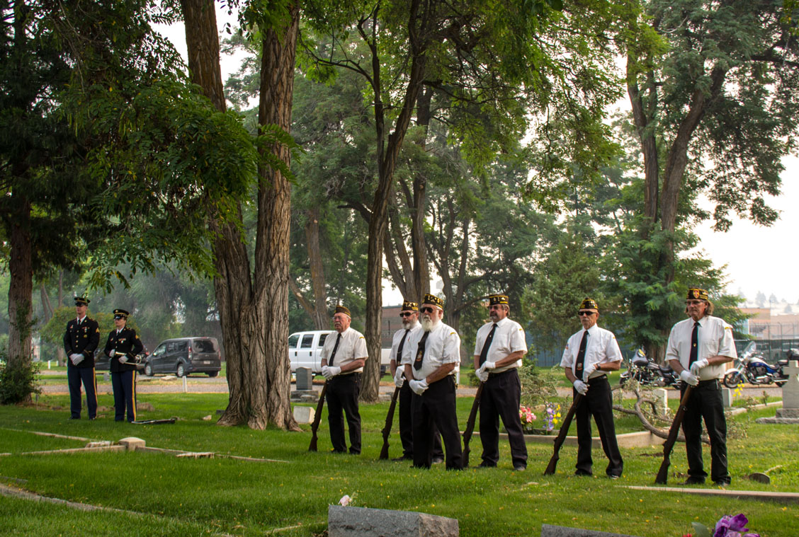 On a very cool morning, 70 - 80 degrees, in Susanville (Only cool because of the several fires burning in nearby areas, Redding, CA fire and Eagle Lake - Spalding, CA fire with smoke blocking the sunshine from heating up the morning faster) 20 PGR arrived to pay final Honors and Respect to our Fallen WWII veteran Lenn Bill. His former wife was also buried with him at the cemetery.