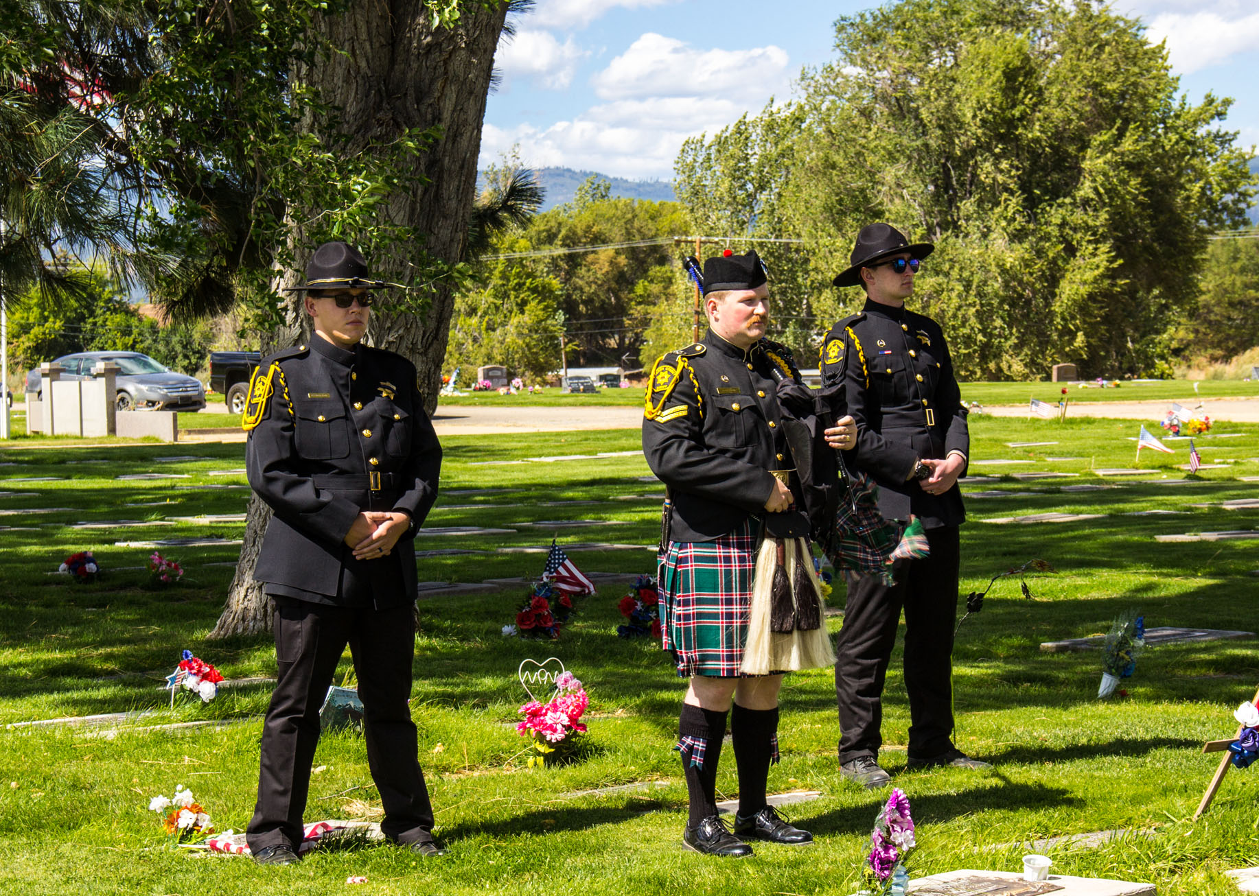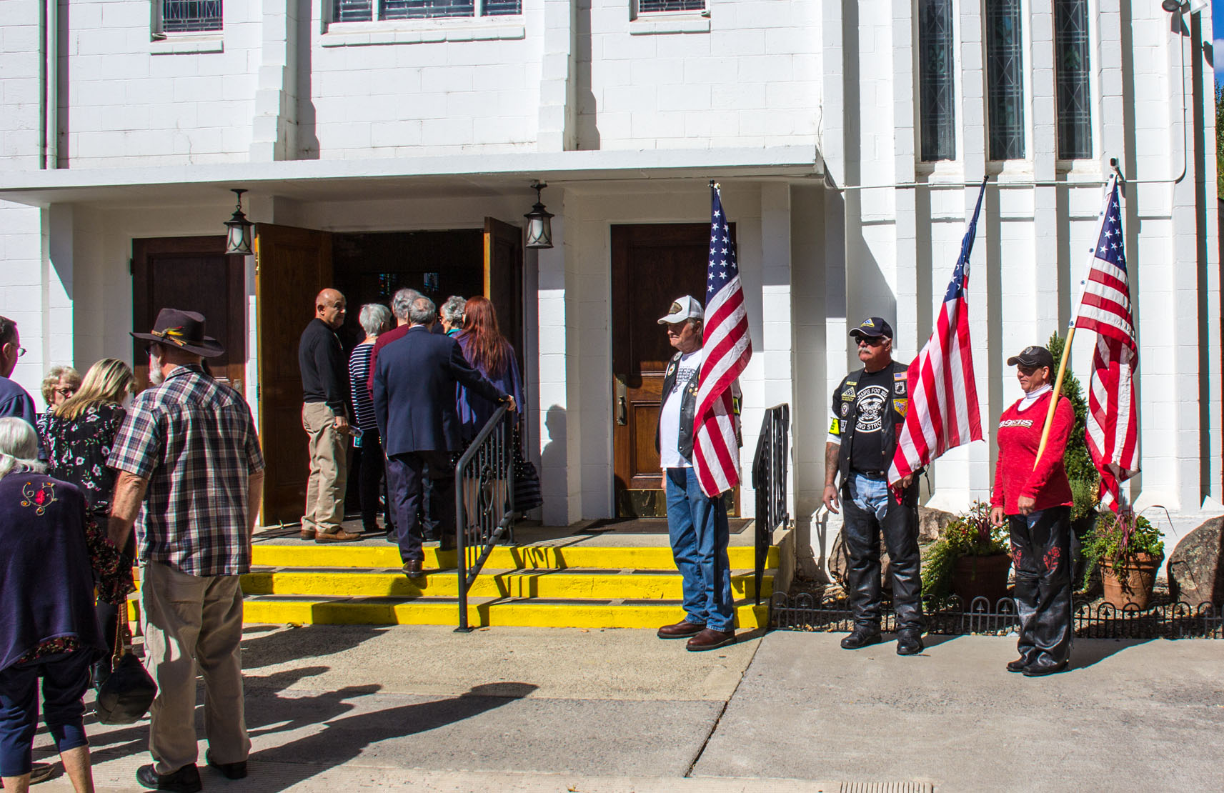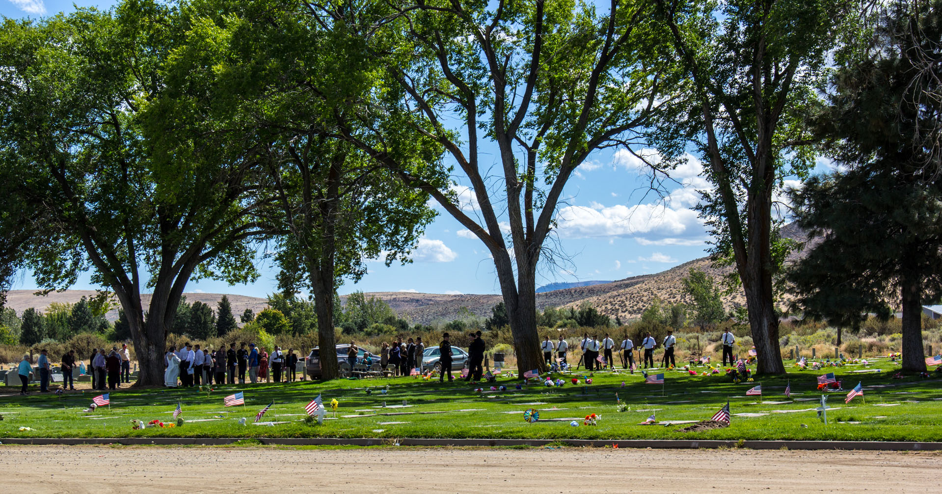 ‘This past Saturday four motors and a rider from Northern Nevada PGR set off to Susanville to support our Northern California PGR in honoring Army Veteran Ron Harrison. The NN PGR joined two NC PGR members in standing a flag line at the Catholic Church prior to the service, then retired to the local Burger King for an hour for the service to take it’s course. Following the service this group of PGR, lead by Susanville, CA PGR Ride Captain Blake “Burnout”, provided the escort of the veteran and a very long procession of family and friends to the cemetery. At the cemetery we met 4 other NC PGR to stand flag line for the full military services. It was a blustery windy afternoon, but a beautiful service I am sure the family appreciated. God’s Speed Ron Harrison, your service has been fulfilled.